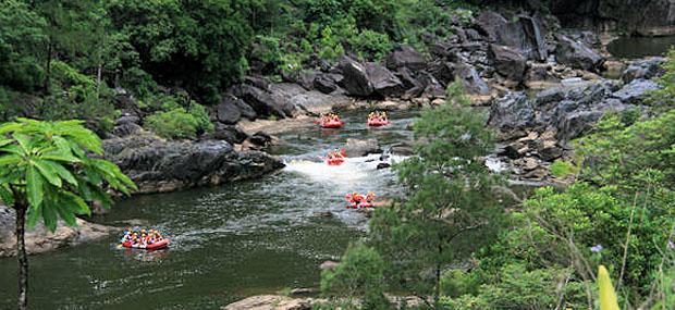 抵达巴伦峡漂流站点,经验丰富的漂流向导们将引领大家在此进行队员分组和简要说明。接下来超过一个半小时的时间,您都可以在峡谷深壑、湍急的水流中度过。短暂的漂流之旅却是观赏周遭景致的绝佳方式——随波徜徉在日光下彻的水流中,河水中有热带棕榈树巨大叶片的倒影,河边蔓藤覆盖的丛林茂密而湿润……